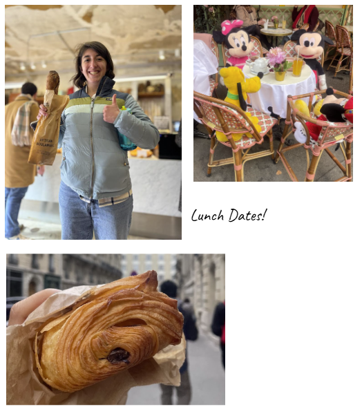 Kayla got to eat a whole baguette, Divine got some shopping done, Peter got pasta, and Christin tried some new pastries.