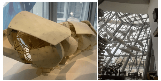Originally, Gehry thought to take inspiration from greenhouses but instead settled on making the building reseumble a boat. Much of Gehry’s work takes inspiration from aquatic sources – which is why there were suspended fishes in the lobby.