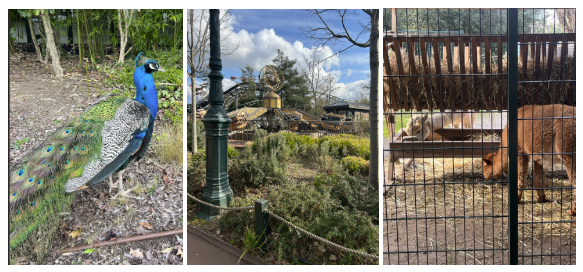 The gardens by the Louis Vuitton Foundation are spectacular and even feature unique animals (different bird species, the peacock above, and alpacas!) and also include a small amusement park.