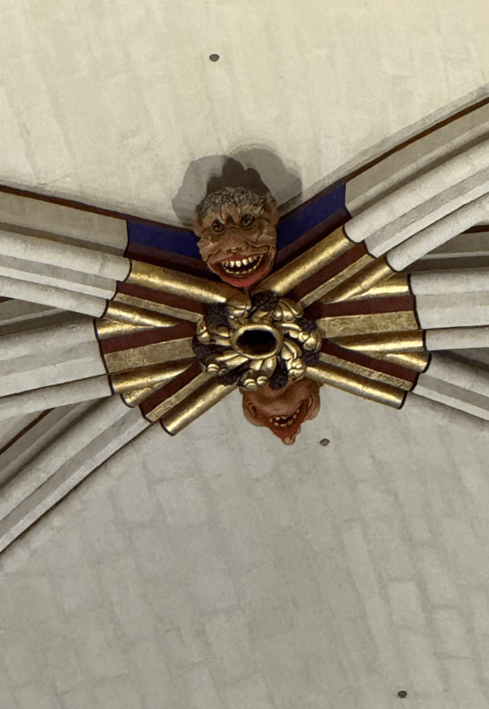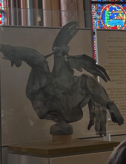 Zooming in on the roof everyone was fascinated and confused by this scary looking face. Not sure what we’re looking at and when we asked the tour guide, she didn’t really give an answer. It doesn’t really match the aesthetic of other features (like the gargoyles, statues of kings on the west facade, and the statues of saints on the inside). The guide said that it relates to the hunchback of Notre Dame, monsters, sirens, and other medieval elements around the cathedral.