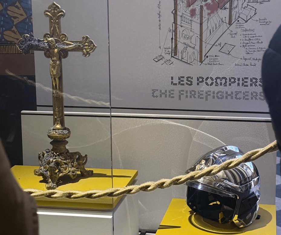 At the back of the church we viewed the crown, a firefighter hat, a cross with original ashes, and the old rooster that was on top of the cathedral before the fire. FUN FACT: the new golden rooster on the top of the church is stuffed with relics from the church.