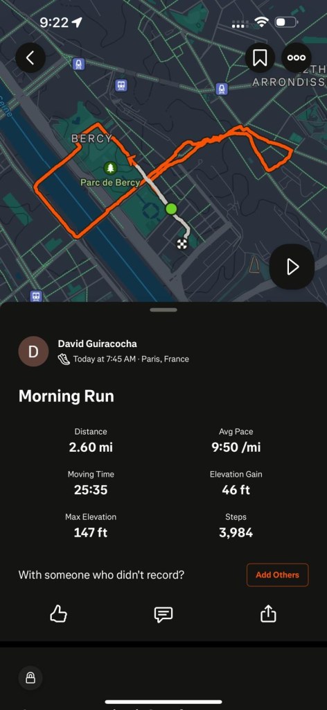 Started the day off early at 7:30AM for a good run (little drizzle) but felt pretty refreshed! Coming back to reflect at the end of the day…might have been an overambitious decision because pretty sore after all the walking.