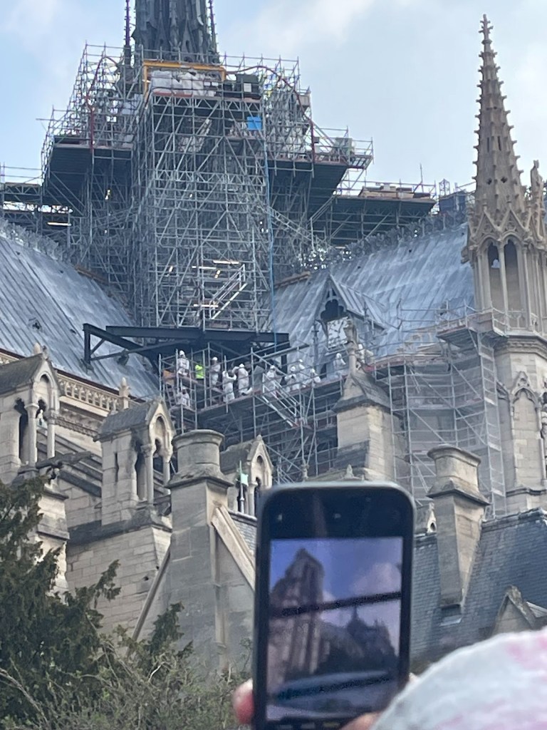 Why are the workers on the roof wearing large white suits you may ask. Well that’s because they are helping repair the roof and in order to restore it to the way it was before the fire, which means working with lead which we now know is very dangerous.